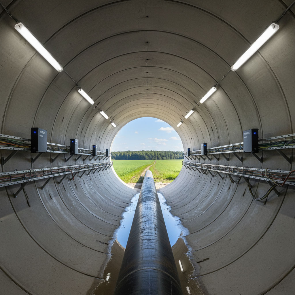 In Tworóg–Tworzeń in Polen wurde ein 600 m langer Mikrotunnel mit einem Durchmesser von 1 016 mm realisiert, der durch seine Enge präzise, durchgängige Kommunikation und Sicht erforderte. Besonders herausfordernd war die minimale verfügbare Infrastruktur, die dennoch stabile Daten-, Sprach- und Videoverbindungen unter Dauerbelastung verlangte. HADES stellte dafür das redundante Backbone mit Kommunikation & Datennetzwerk, mobiler Telefonie und Videoüberwachung bereit – latenzarm, ausfallsicher, skalierbar: immer online unter Tage.